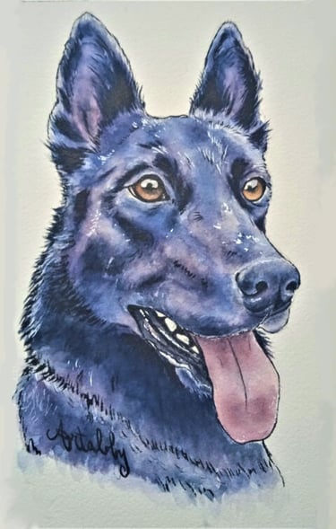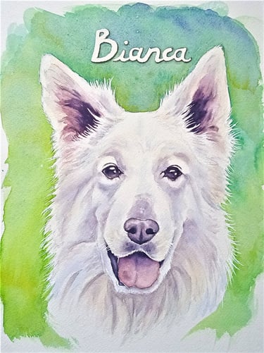 Le rendu à la peinture du regard de mon chien révèle tout à fait son côté gentil et espiègle !